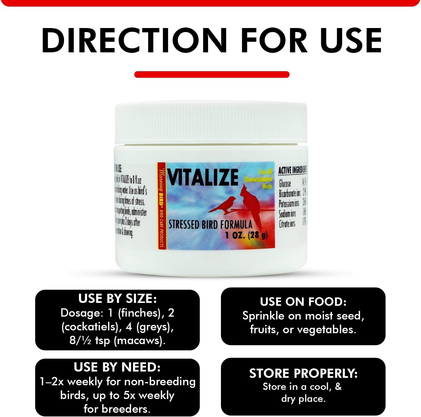Vitalize, Supplement for Sick, Injured, or Stressed Caged Birds; Dehydration and Exhaustion Treatment for Parakeets, Cockatiels, Budgies, Finches, Canaries, and Parrots, 1 Oz